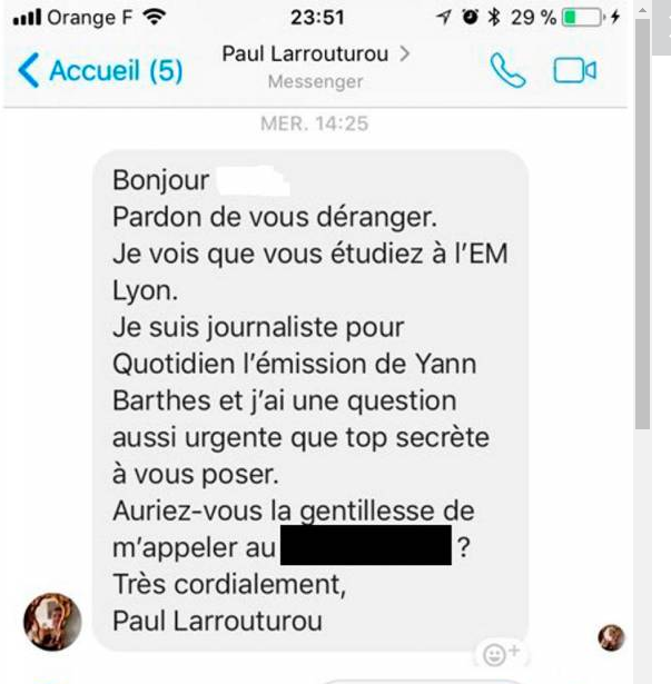 Mais dès l’annonce du cours, le bon journaliste de Quotidien a préparé son travail, un peu comme les taupes de la Gestapo montaient des dossiers: l’essentiel est trouver le bon délateur, le reste coule tout seul. Il a de la chance, aujourd’hui comme à l’époque, les balances sont à la mode.